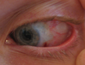Three weeks after my 2nd surgery and, overall, my eye’s looking pretty good. Okay, not so great when I lift my eyelid (left pic) but just to look at me at this point most people don’t see anything wrong with my eye (per the right pic). Check out the eyelashes … they are thicker, longer, and naturally curl up due to the medication. Cool side effect!